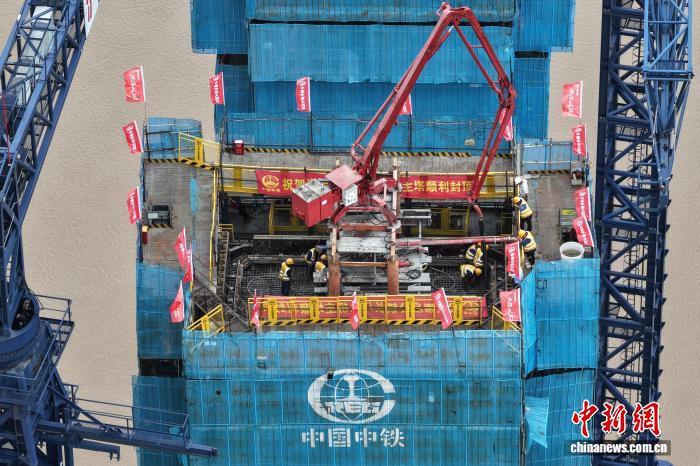 世界在建最大跨度公铁两用无砟轨道斜拉桥双主塔同日封顶