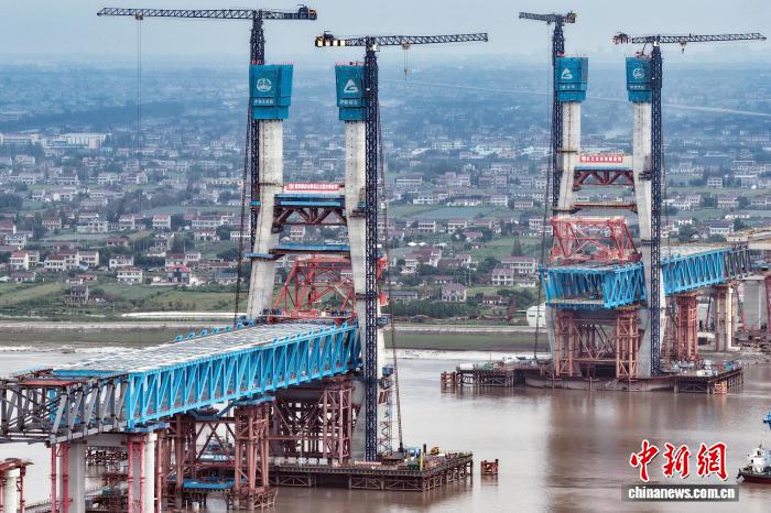 世界在建最大跨度公铁两用无砟轨道斜拉桥双主塔同日封顶